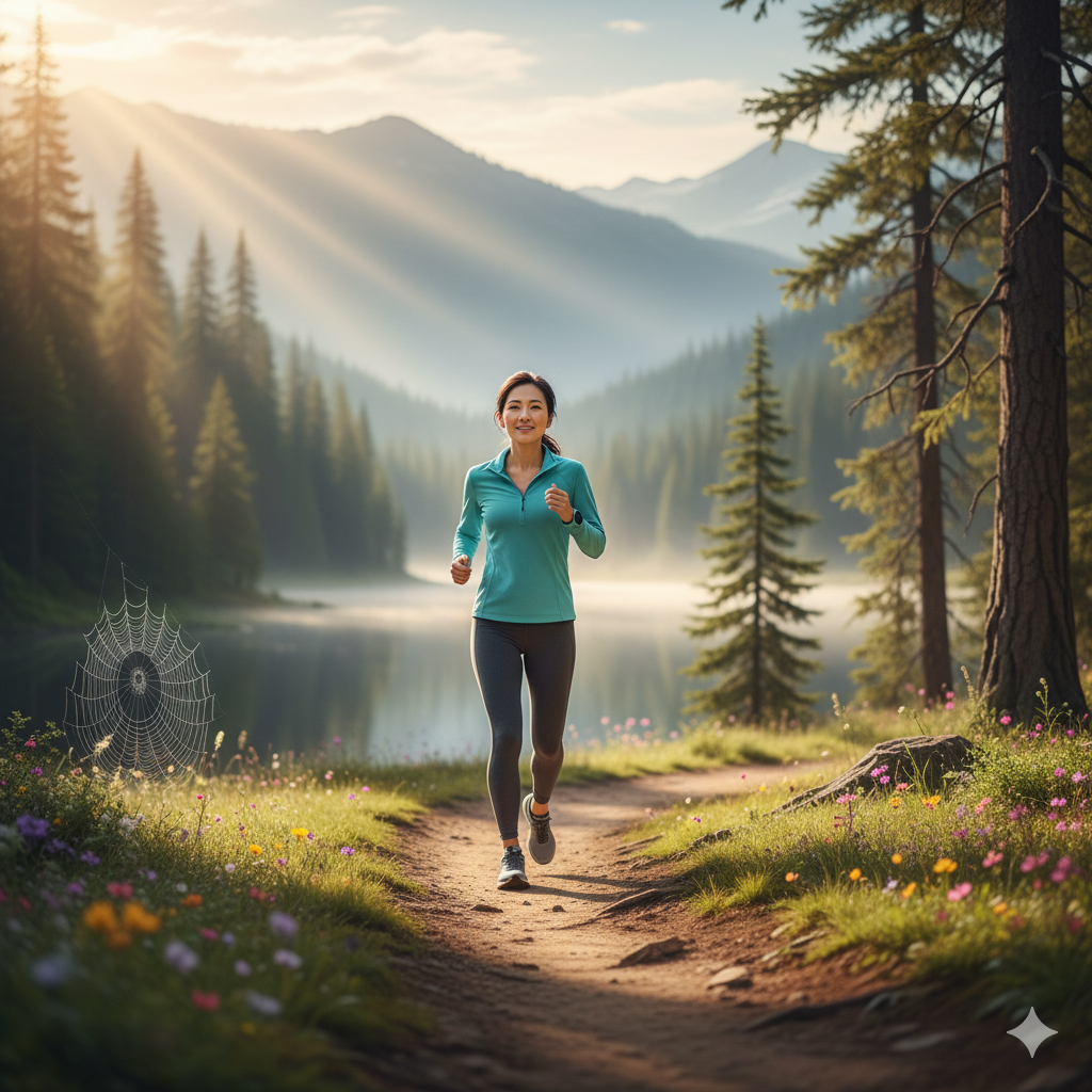 - 스트레스 호르몬 감소와 뇌파의 변화: 스트레스 상황에서 분비되는 코르티솔 호르몬은 슬로우 조깅과 같은 저강도 유산소 운동을 통해 자연스럽게 감소됩니다. 이와 함께 뇌에서는 스트레스 해소와 정서적 안정에 도움을 주는 '알파파'가 증가합니다. 평온한 마음 상태를 유지하며 자연 속을 걷는 듯한 슬로우 조깅은 우리의 뇌가 명상 상태에 진입하도록 돕는 것입니다.