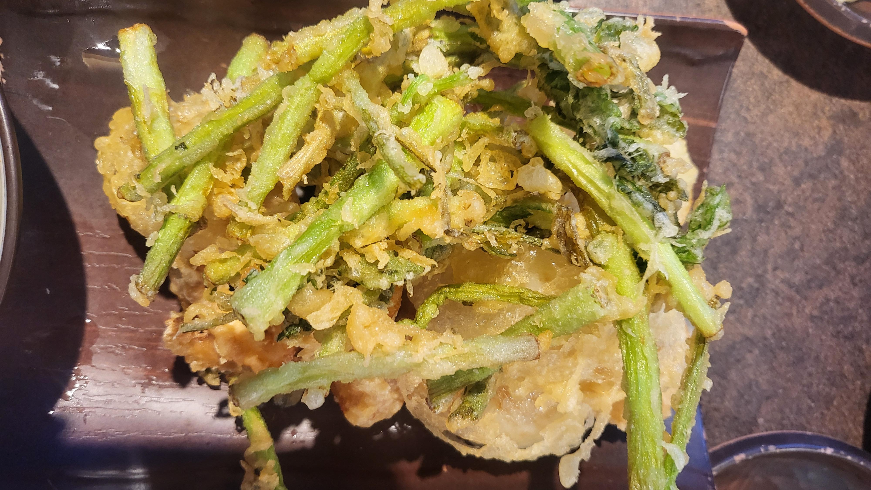 튀김은 미나리튀김와 양파튀김과 오징어 튀김이 함께 나왔는데, 시간이 지나도 눅눅해지지 않고 계속 바삭해서 놀랐습니다.