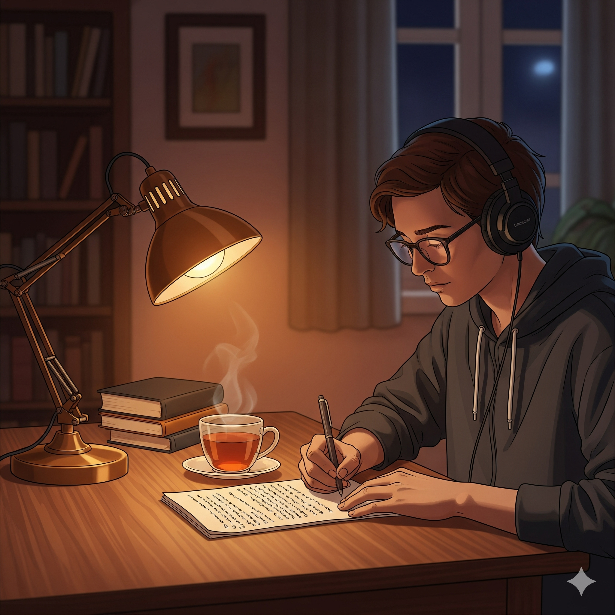하루 동안 쌓였던 복잡한 생각과 감정들을 잠시 내려놓고, 오직 펜과 종이, 그리고 글에만 집중하는 시간입니다.