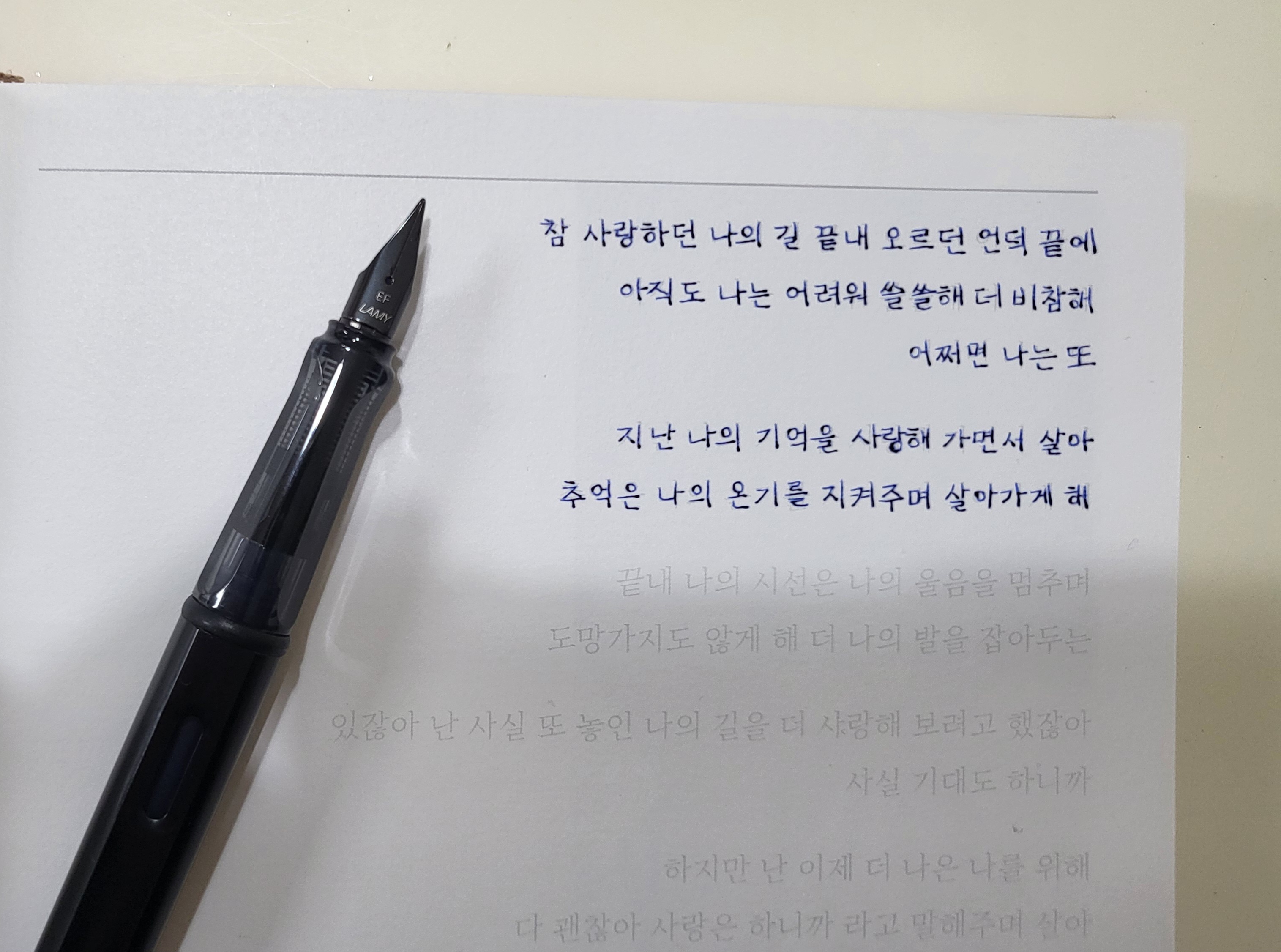 안녕하세요. 혹시 필사하시나요? 저는 제가 좋아하는 가수의 노래가사를 주로 필사하고 있어요ㅋ
