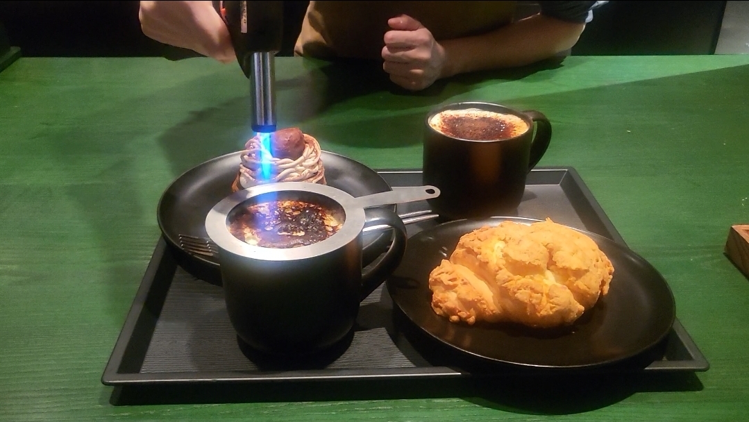 음료가 완성되었다고 해서 가보니 바리스타 분께서 토치를 들고 있더라고요