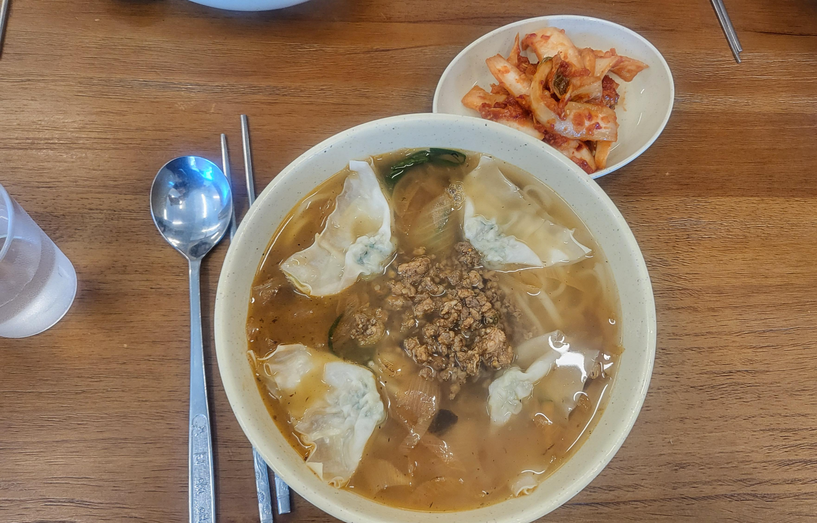그래도 뜨끈한 고기 육수에 면이 한가득 들어 있는데도 느끼하지 않고, 한 숟갈 뜨자마자 왜 사람들이 이 집 칼국수를 찾는지 알겠더라고요.